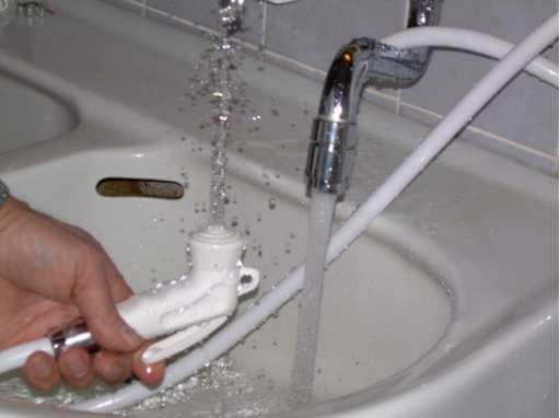 Einfach anschließen an Waschtisch, Wandarmatur oder Badewanne